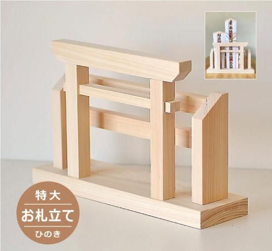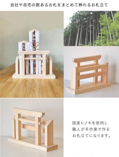 ご注文を受けてからひとつひとつ手作業で製作いたしますので、お手元に届いた際にはヒノキの香りがまだ残っています。自然の風合いがとても優しい印象のお札立てなら、既製品のお札も馴染んで飾ることができます。
