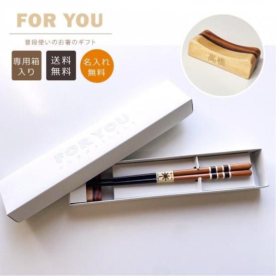 【送料無料】名入れ箸と箸置きセット【FORYOU箱・木製ストライプ】 |