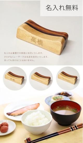 名入れ箸置きと木製の箸がセットになったギフト。プレゼントしてすぐにお使いいただけます。男女問わないデザインなので家族でお揃いのプレゼントやお友達同士への贈物にもオススメです。
